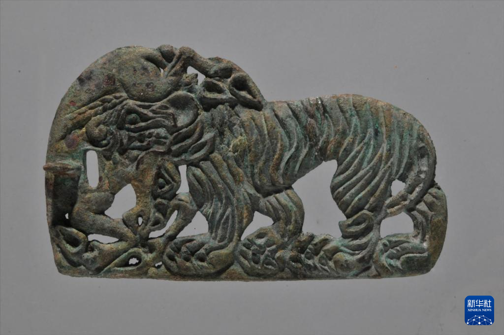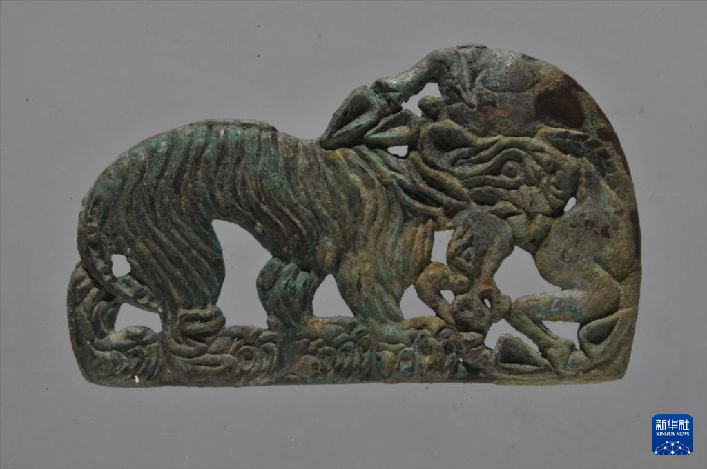 “虎噬驴”透雕铜牌饰(宁夏博物馆供图)