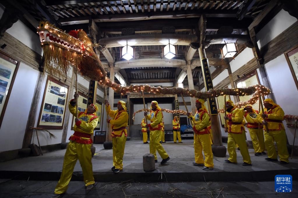 3月2日,在黄山市徽州区蜀源村,“舞草龙”队伍从村中祠堂出发,开始在全村巡游。
