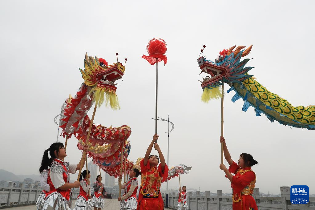 3月4日,在贵州省遵义市余庆县子营街道下里社区,人们在进行舞龙表演。