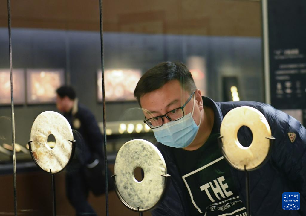 3月2日,游客在良渚博物院观看玉璧。新华社记者 翁忻旸 摄