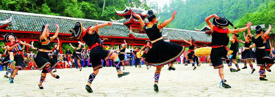 为培养地方乡土人才,反排村非遗传承人经常组织青少年学习苗族歌舞,现在村里大部分年轻人都能跳木鼓舞。张强摄/光明图片