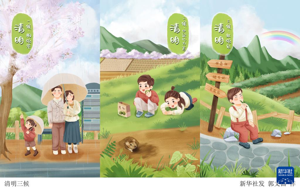 插画:清明三候(横版)新华社发 郭文曲 作