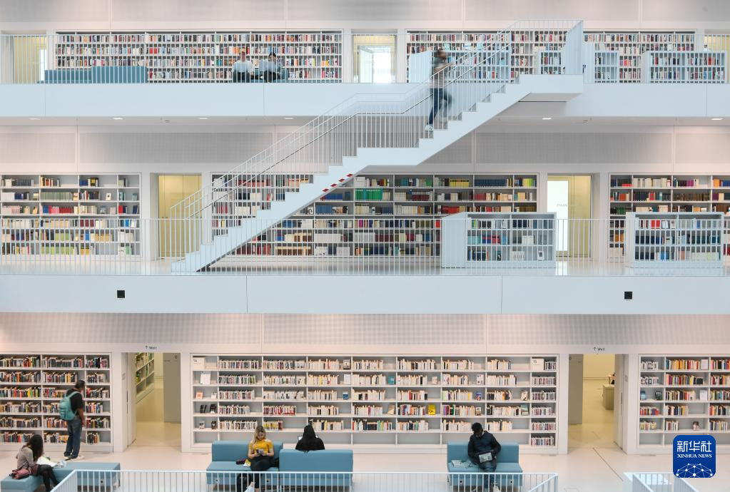 4月19日,人们在德国斯图加特市立图书馆内参观。