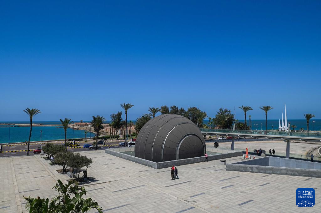 4月19日,人们在位于埃及亚历山大的亚历山大图书馆外参观。