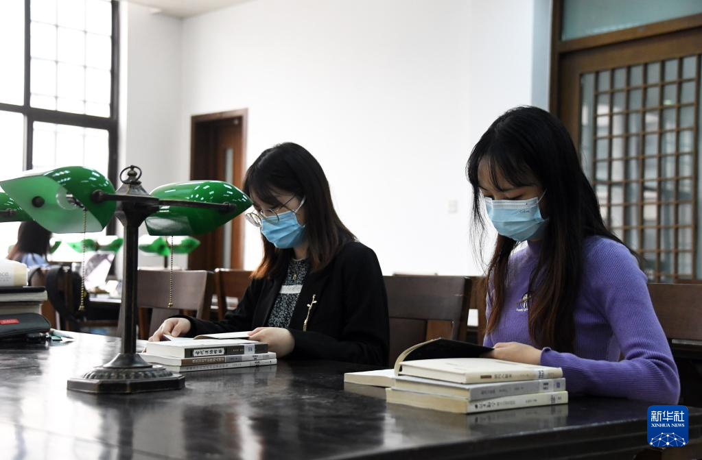 在北京大学图书馆名家阅览室,学生在阅读书籍(4月19日摄)。