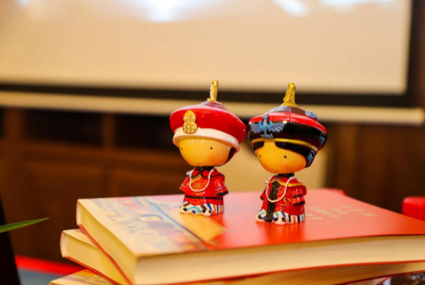 单霁翔的书和故宫文创玩偶(嘉宾供图)