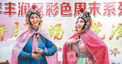 在河北省唐山市丰润区文化馆,演员表演评剧《杨八姐游春》。该剧目通过网络播出,受到戏迷欢迎。朱大勇摄(人民图片)