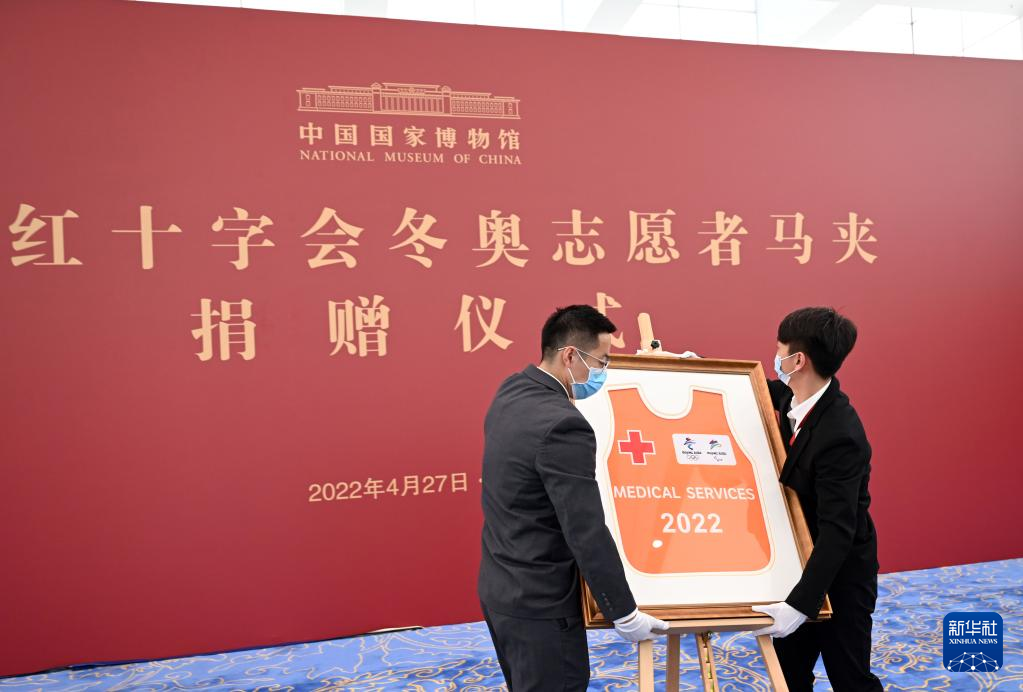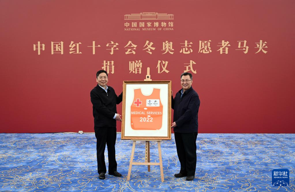 当日,中国红十字会将一件编号为2022、由红十字国际委员会主席彼得·莫雷尔、红十字会与红新月会国际联合会主席弗兰西斯科·罗卡签名的冬奥红十字志愿者马夹捐赠中国国家博物馆,入藏仪式在中国国家博物馆举行。