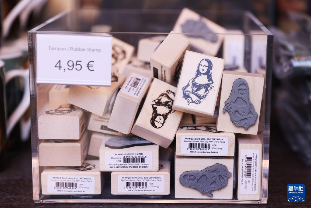 这是5月11日在法国巴黎卢浮宫官方纪念品店拍摄的有蒙娜丽莎图像的印章。