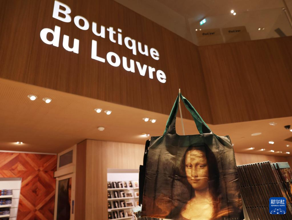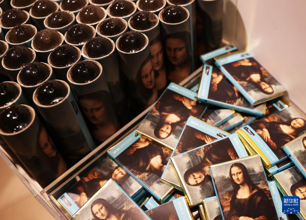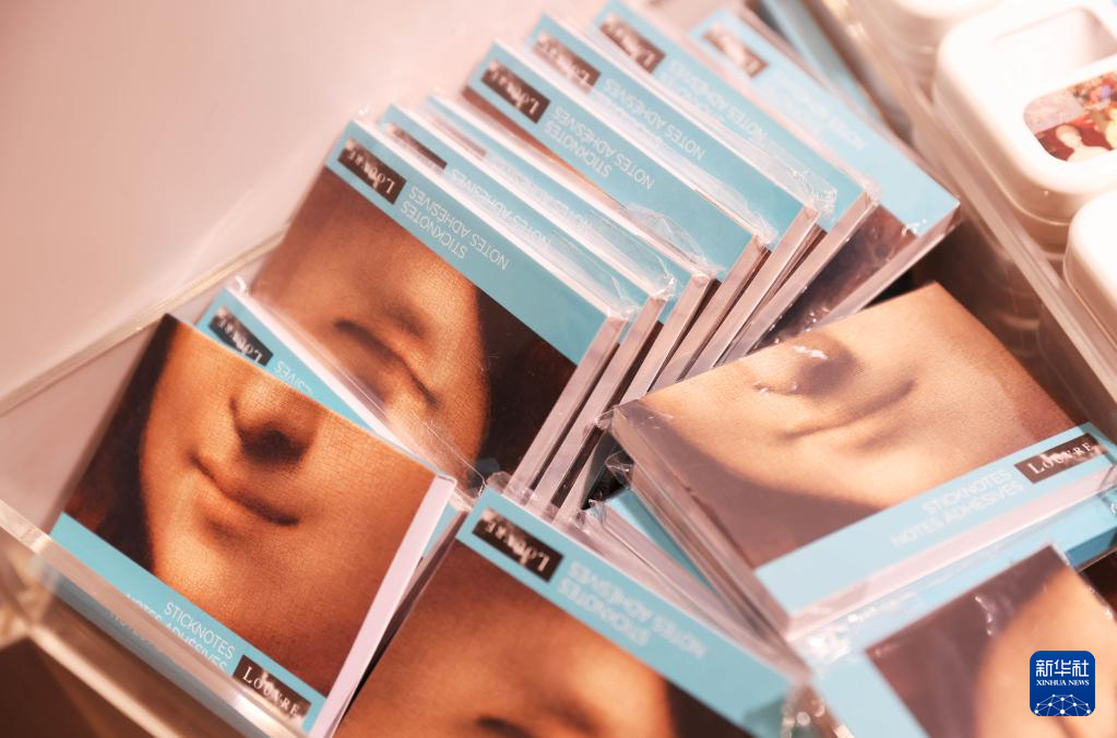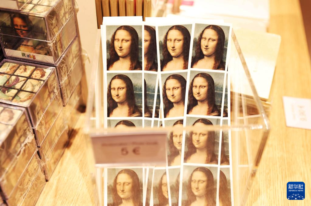 5月11日,游客在法国巴黎卢浮宫官方纪念品店选购与《蒙娜丽莎》相关的文创产品。