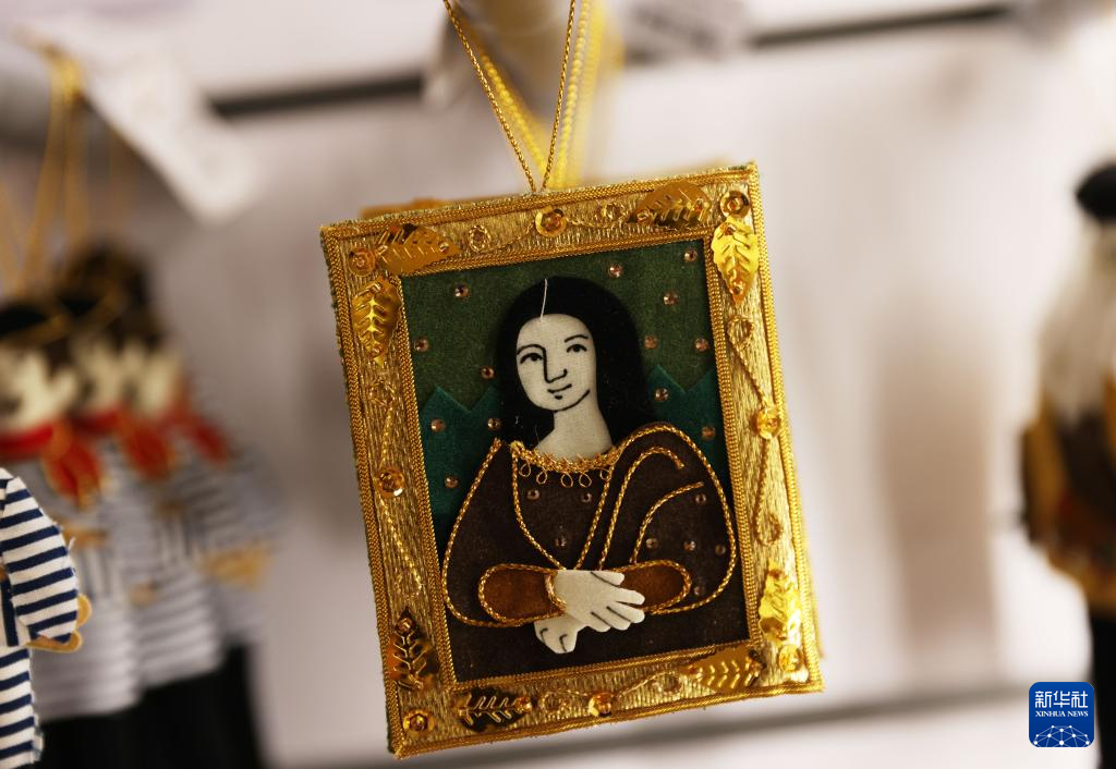 这是5月11日在法国巴黎卢浮宫官方纪念品店拍摄的蒙娜丽莎形象的挂饰。