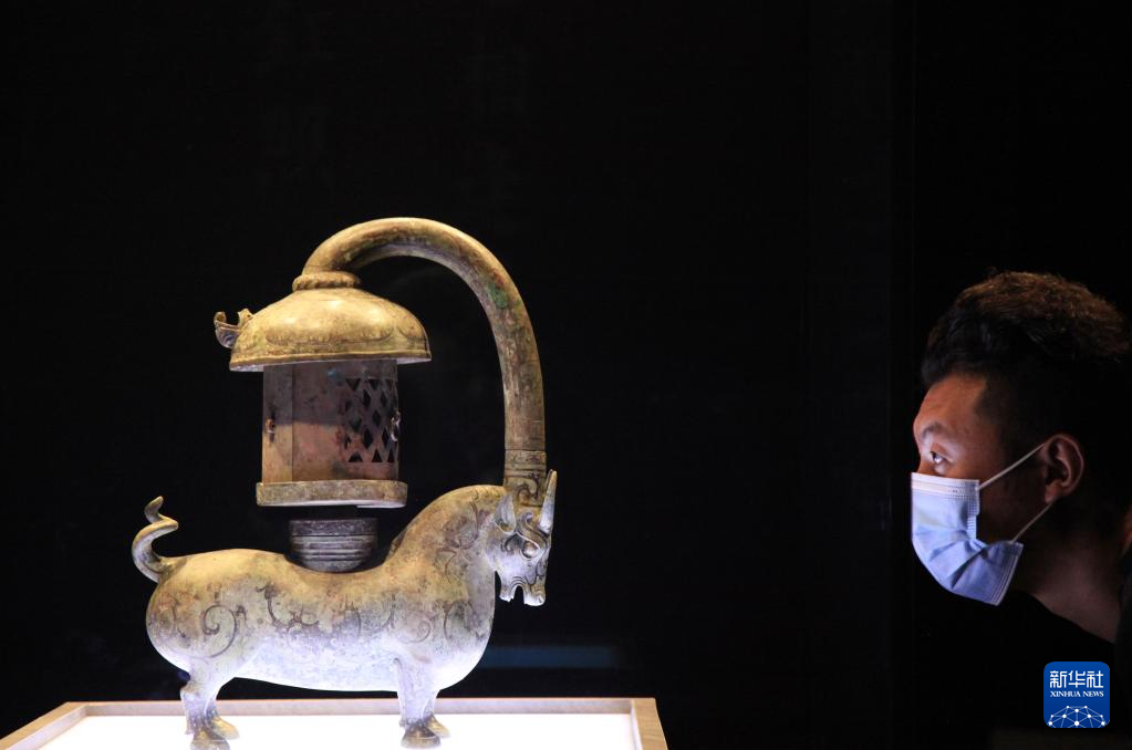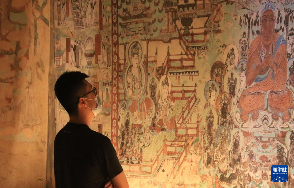 5月15日,游客在甘肃省敦煌市博物馆参观文物展。