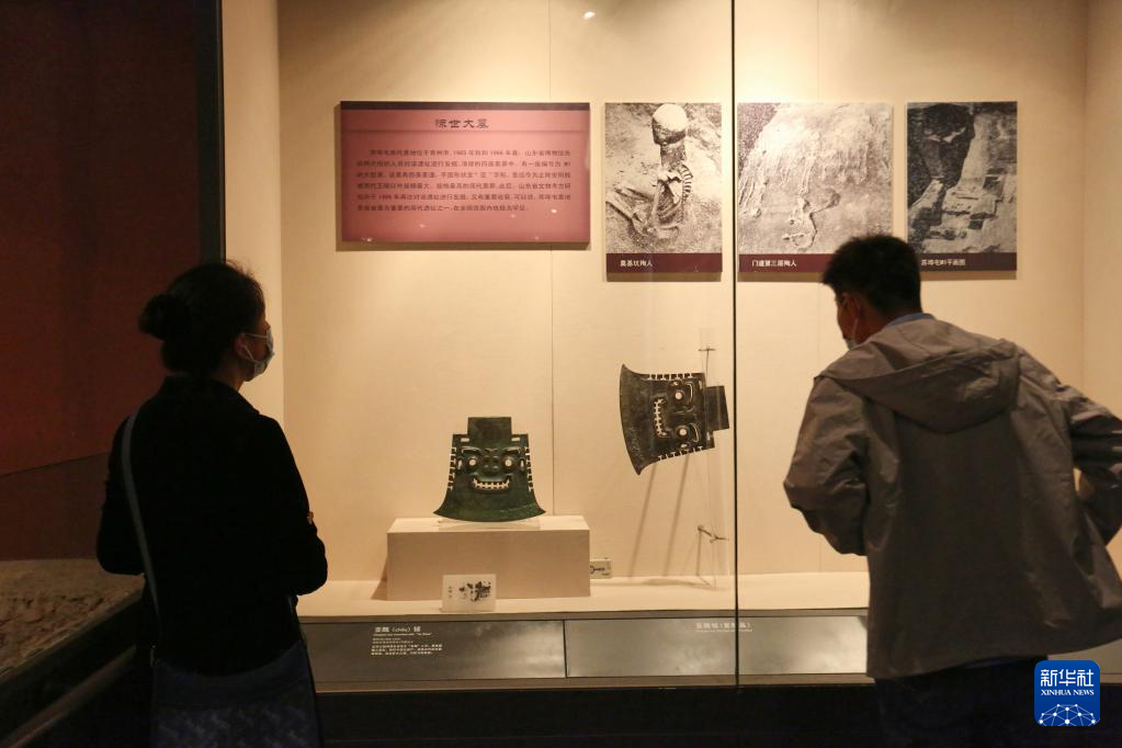 5月15日,游客在位于济南的山东博物馆内欣赏十大“镇馆之宝”——亚醜钺(又名亚丑钺)。