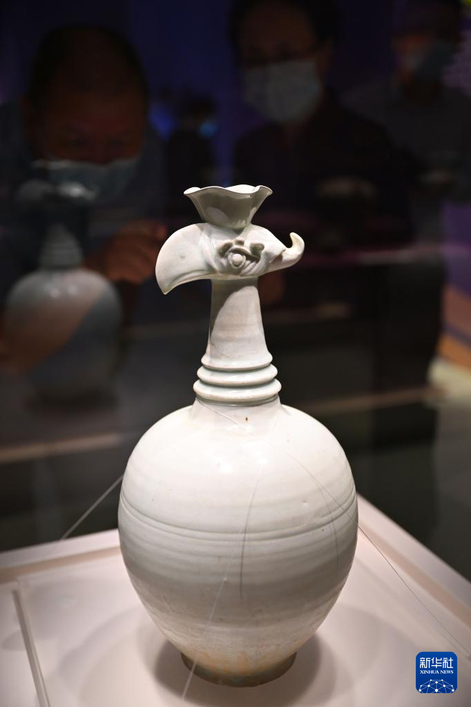 这是宋代青白釉花口凤首瓷壶(5月18日摄)。