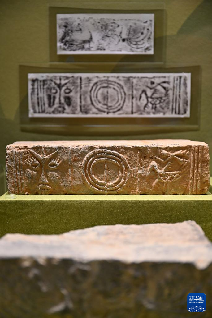 这是东汉时期的仙人神鸟纹画像砖(5月18日摄)。