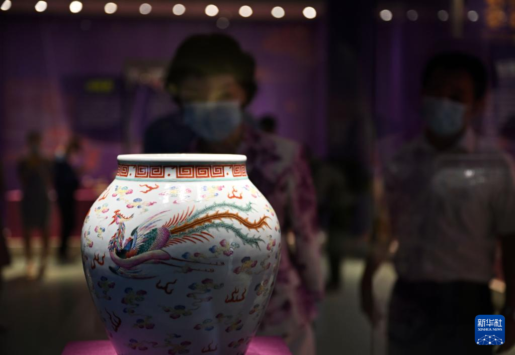 这是清代粉彩龙凤纹瓷罐(5月18日摄)。
