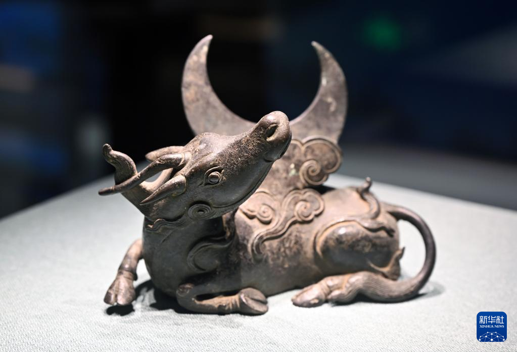 这是清代犀牛望月铜镜架(5月18日摄)。