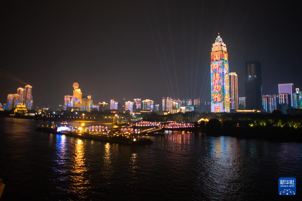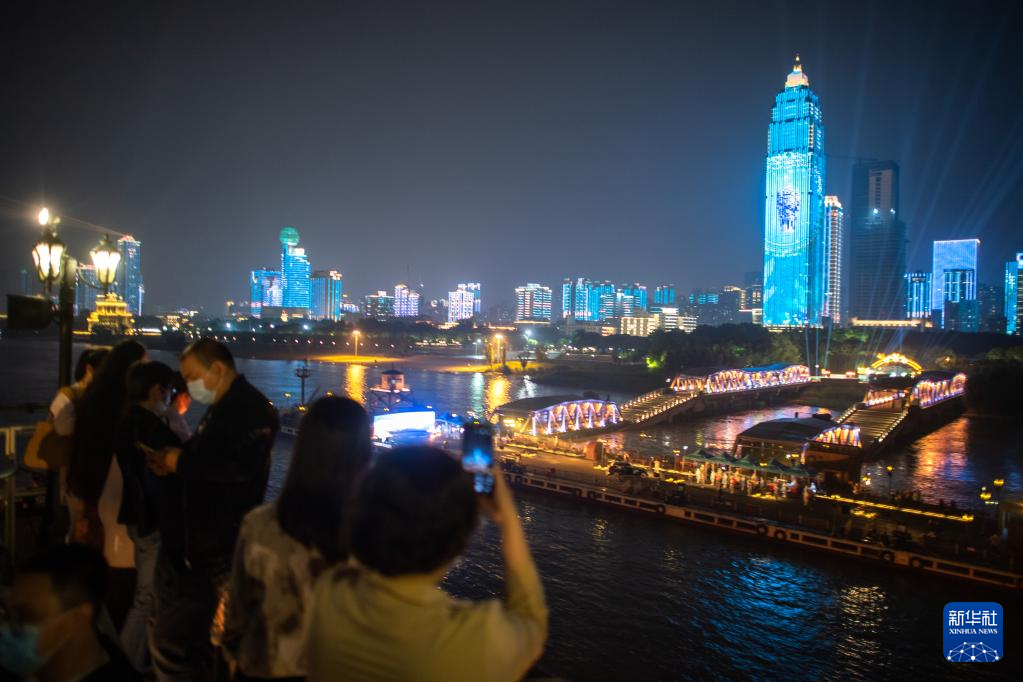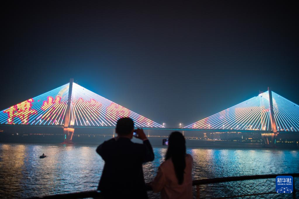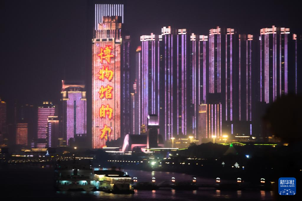 5月18日是国际博物馆日。当晚,湖北武汉上演“博物馆之夜”主题长江灯光展示活动。活动融合现代光影、AR等技术,动态展示各地精美馆藏文物及主题标语,点亮两江四岸标志性建筑,让文物“活”起来。
