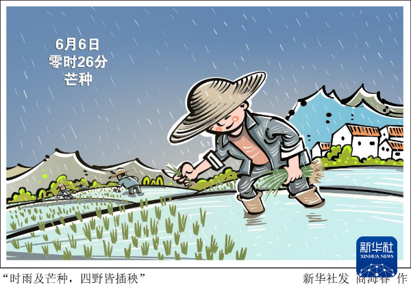 漫画:“时雨及芒种,四野皆插秧” 新华社发 商海春 作