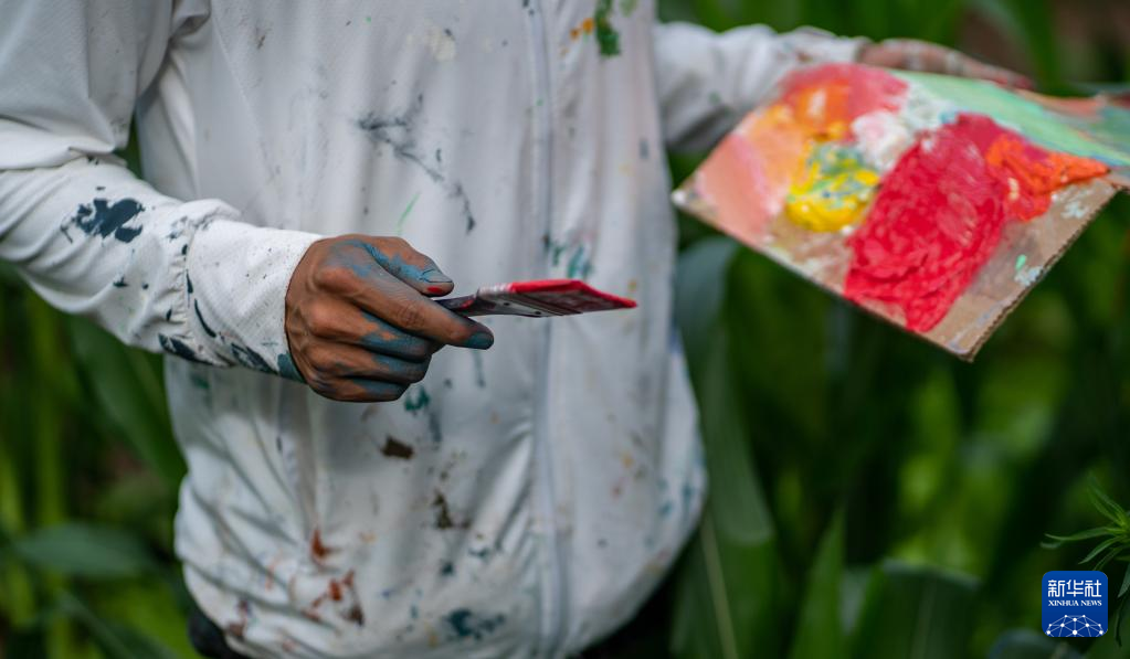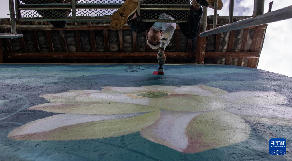 刘志诚在永胜县三川镇进行墙绘创作(6月24日摄)。