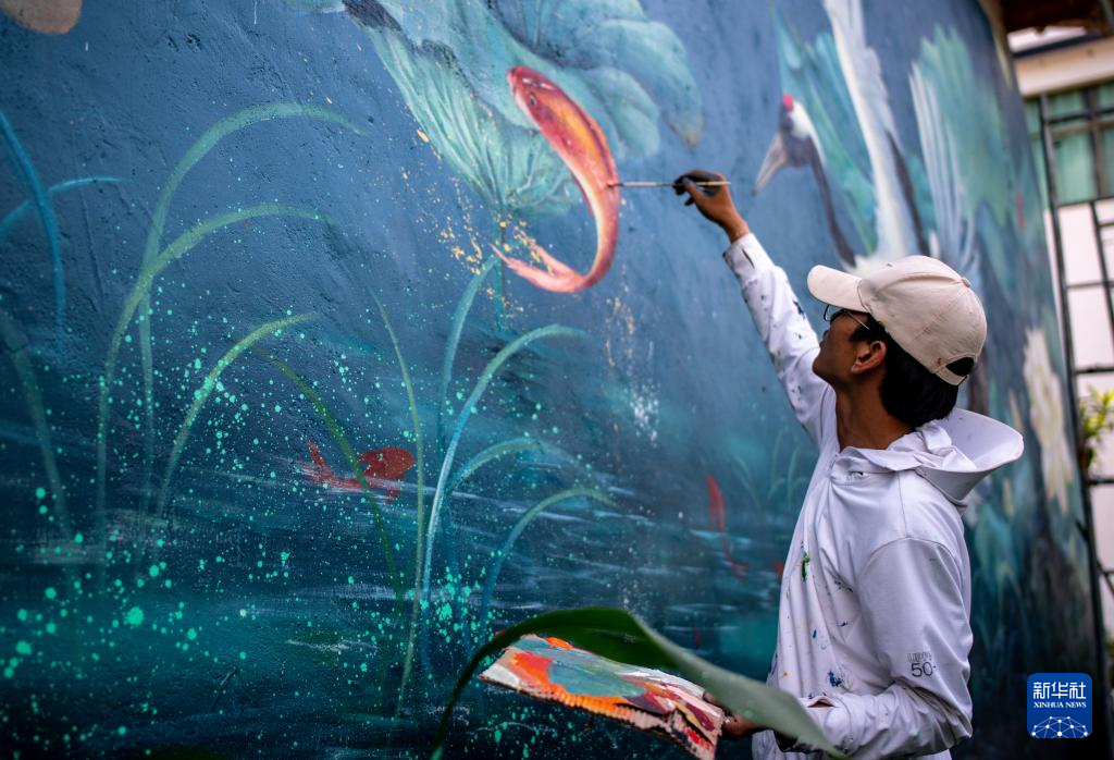 在云南省丽江市永胜县,有一位“95后”公益墙绘师颇受村民欢迎,他的网名叫“刘小备”,真名刘志诚。他在家乡程海镇、三川镇的多个村子里画了20多幅不同主题的墙绘,给村庄增添了斑斓色彩,其创作墙绘的短视频也在网络上热传,吸引了不少游客前来“打卡”。如今,出名的刘志诚并没有骄傲和浮躁。“感谢这个时代,让我这样的小人物也有大舞台,得以施展才华,为社会创造美。”他说。
