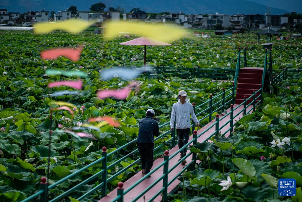 刘志诚(右)和小伙伴在永胜县三川镇翠湖村拍摄短视频(6月24日摄)。