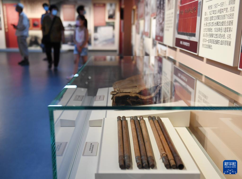 在中国人民抗日战争纪念馆《烽火印记——北京抗日战争主题片区特展》中展出的历史文物(7月7日摄)。