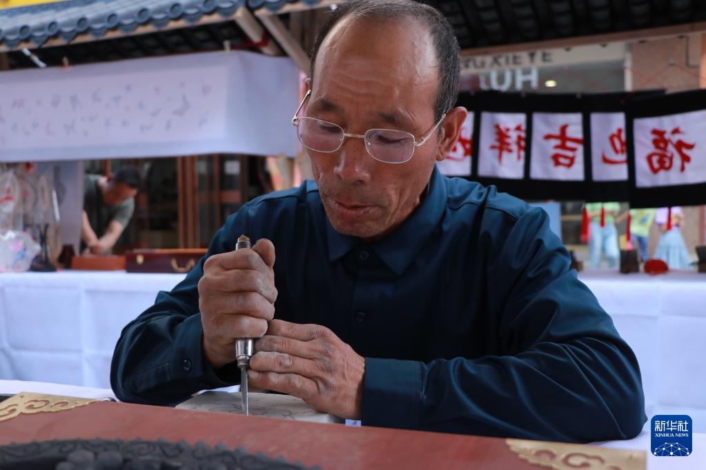 7月9日,国家级砖雕传承人马凤章在刻制砖雕。