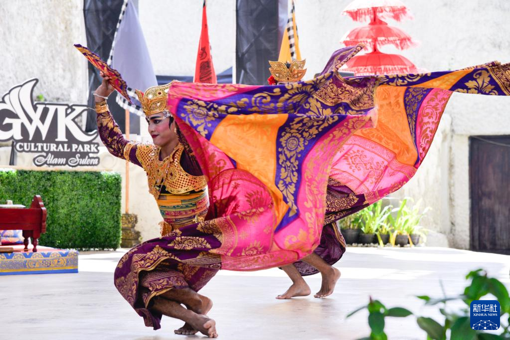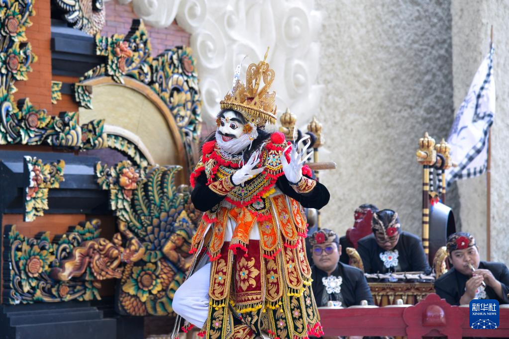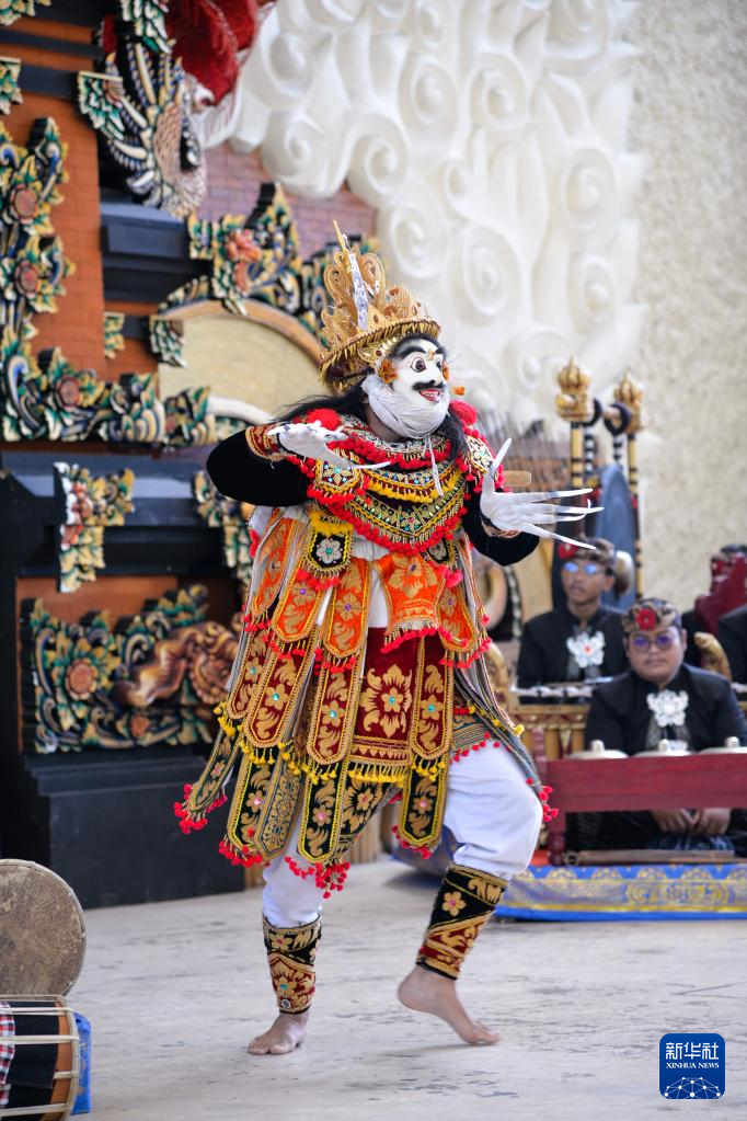 7月10日,舞者在印度尼西亚巴厘岛一处文化公园表演传统舞蹈面具舞。