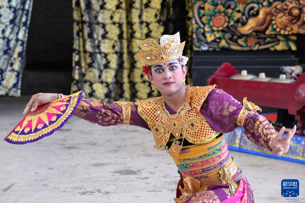 7月10日,舞者在印度尼西亚巴厘岛一处文化公园表演传统舞蹈雷贡舞。