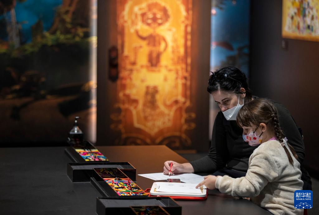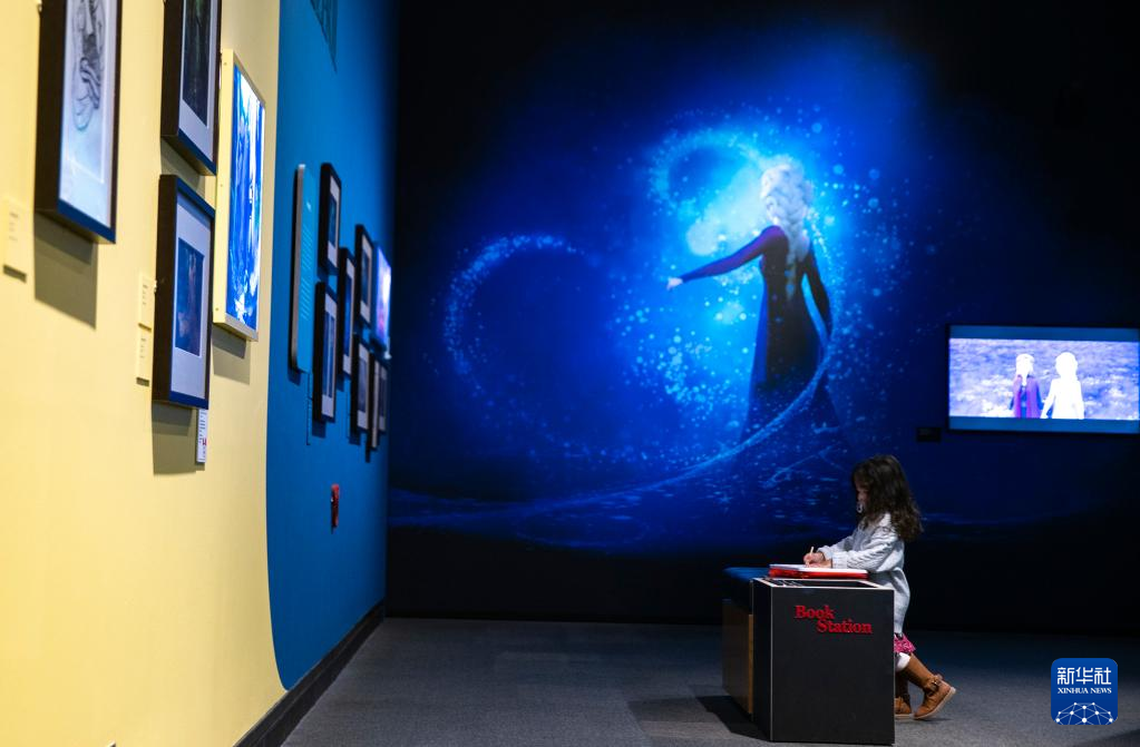 7月13日,在澳大利亚布里斯班的昆士兰博物馆,一名儿童临摹迪士尼画作。