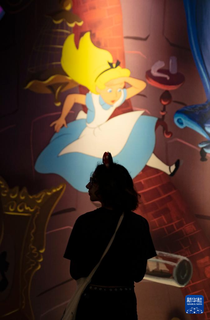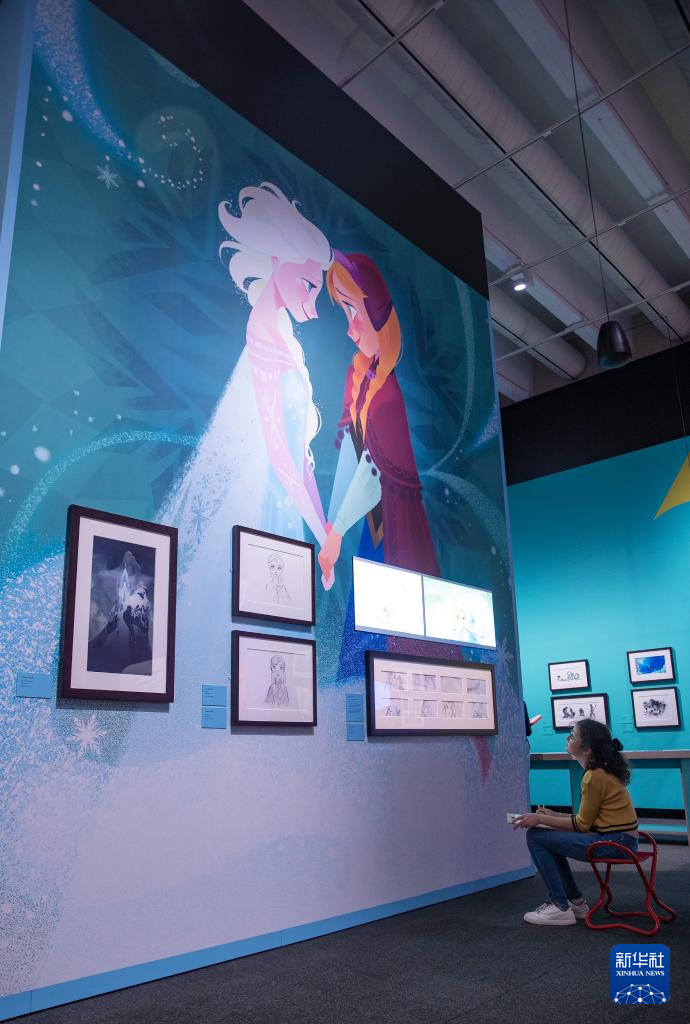 7月13日,在澳大利亚布里斯班的昆士兰博物馆,一名女子观看迪士尼画作。