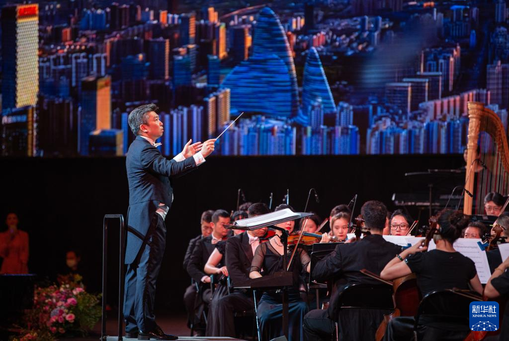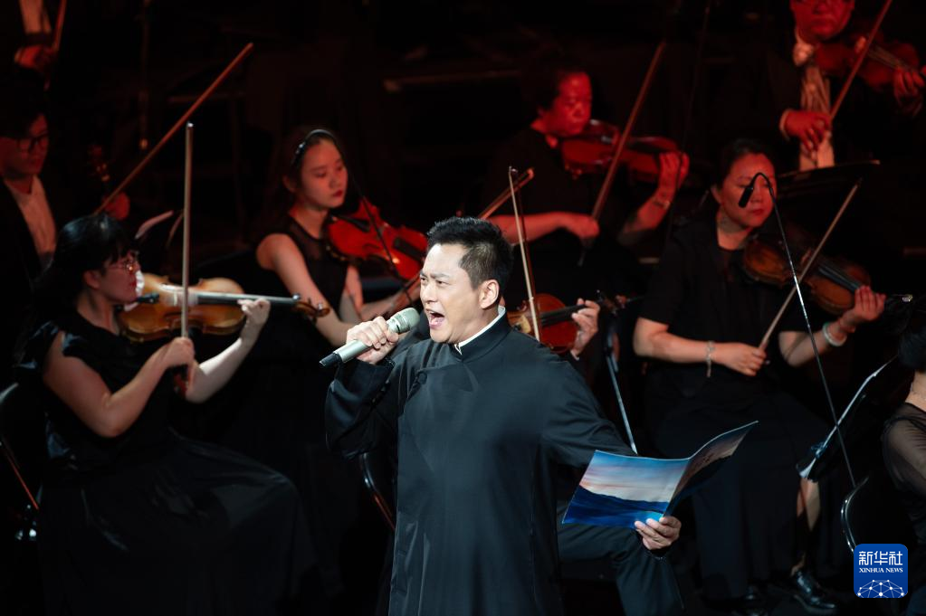 7月25日,指挥家夏小汤在2022北京西山永定河文化节开幕式上指挥乐团演奏。