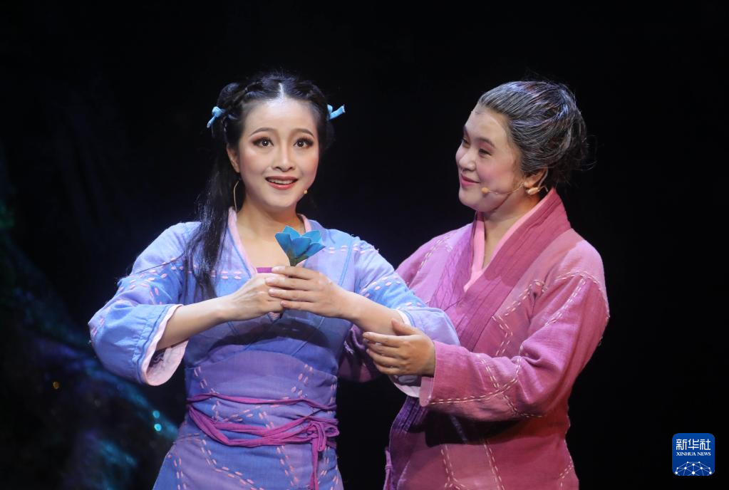 8月13日,在河北固安大剧院,演员在童话剧《马兰花》中表演。