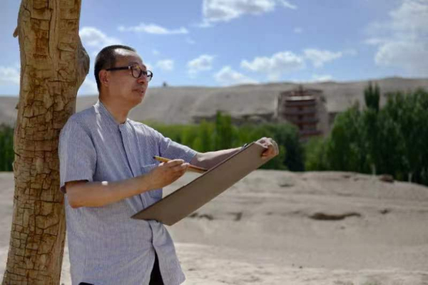 2015年7月21日 潘鲁生在甘肃丝路古道写生