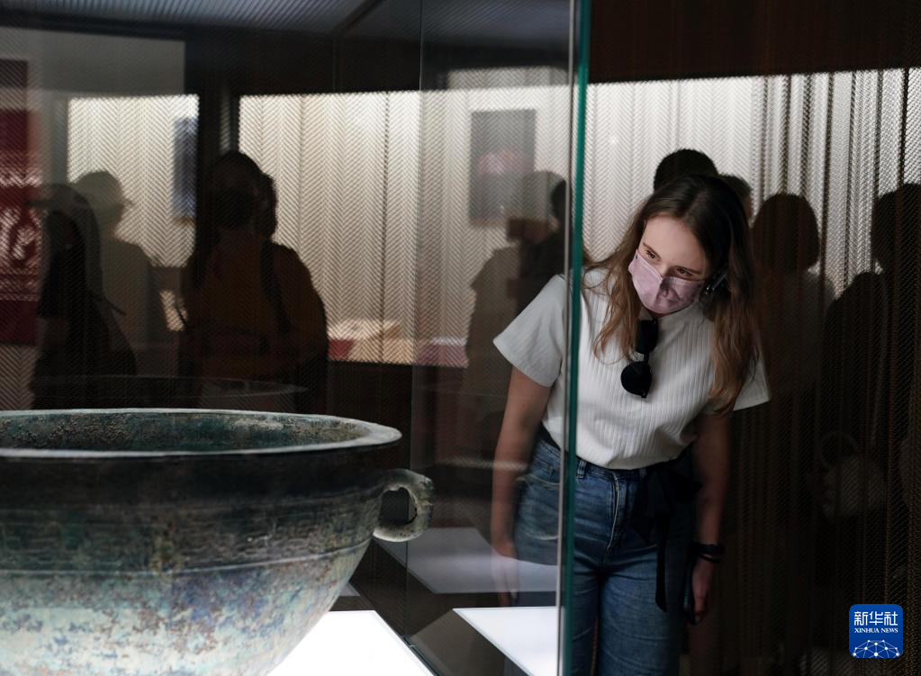 8月15日,上海交通大学学生、来自白俄罗斯的夏澜在观看展览。