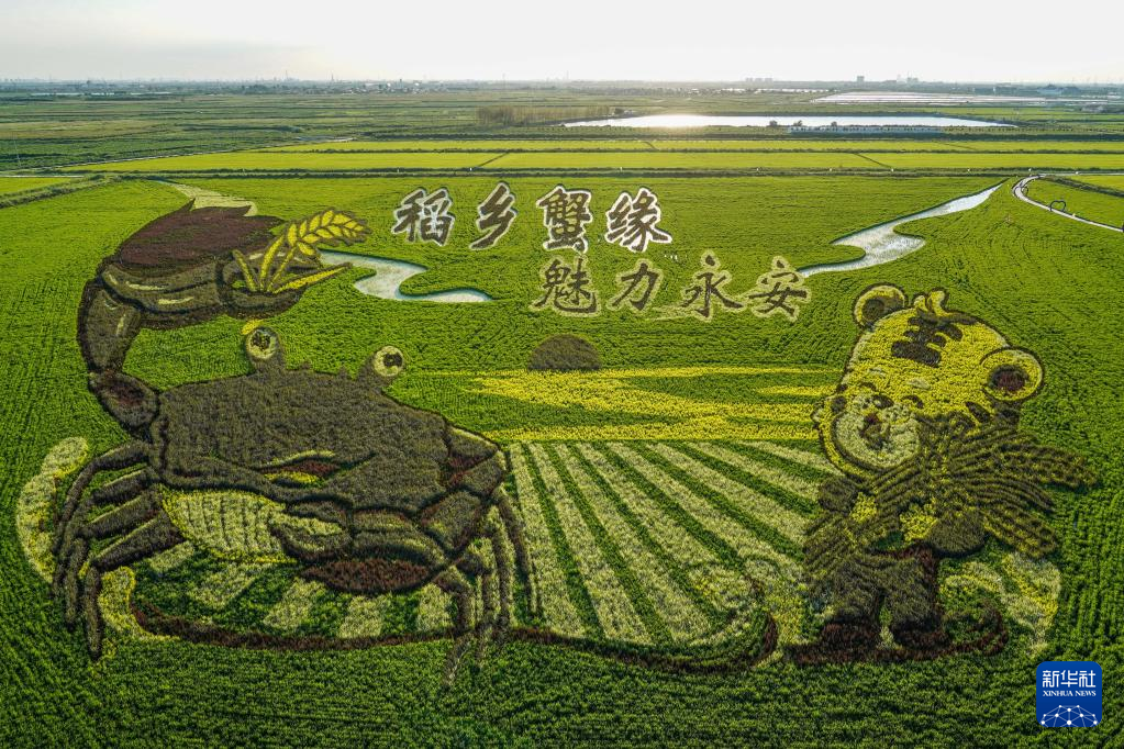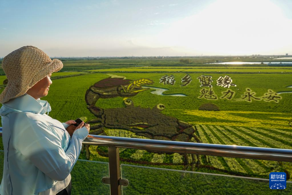 近日,山东东营垦利区永安镇二十八村万亩稻田里的大型3D彩色稻田画进入最佳观赏期,成为一道别致的乡村景观,吸引不少游客前来“打卡”。