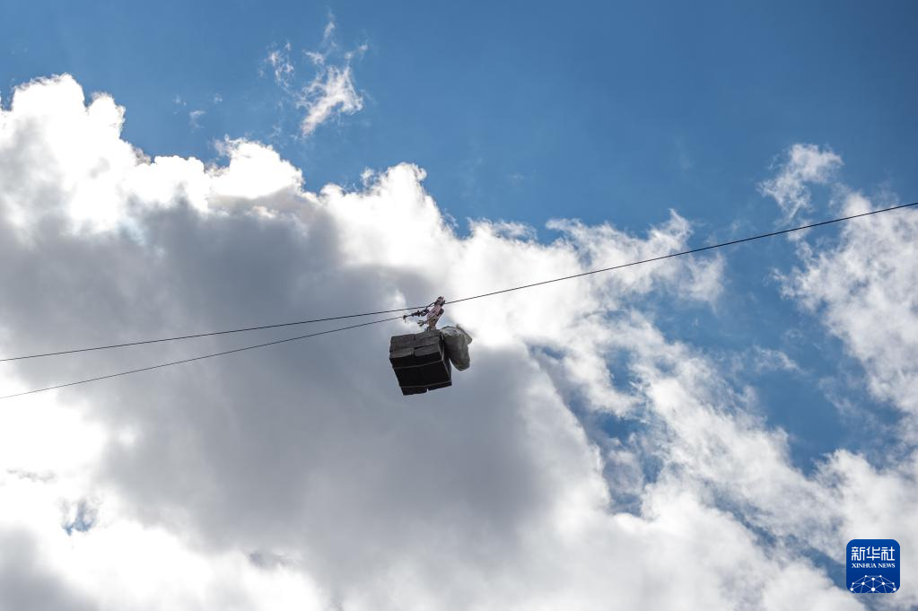 一批“西大墙”段修缮所用的石料正通过索道运输(8月16日摄)。