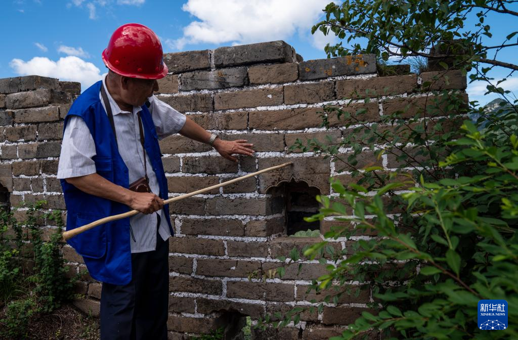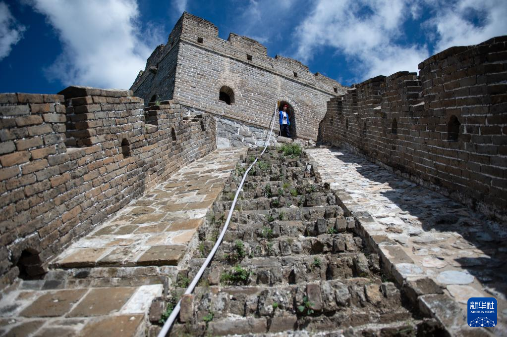 工程师程永茂站在“西大墙”段157号敌台门口,眼前的台阶经修缮后恢复旧貌(8月16日摄)。