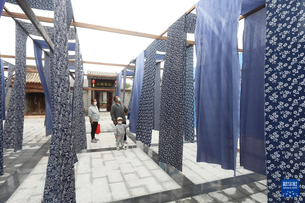 8月28日,游人在蔚县邢家庄村内的一个染房景点参观。新华社发(武殿森摄)