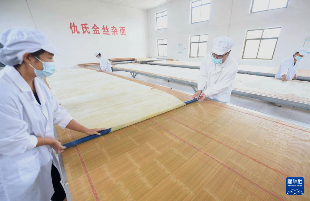 8月30日,饶阳县一家金丝杂面公司的工人在车间内晾面皮。新华社记者 王民 摄