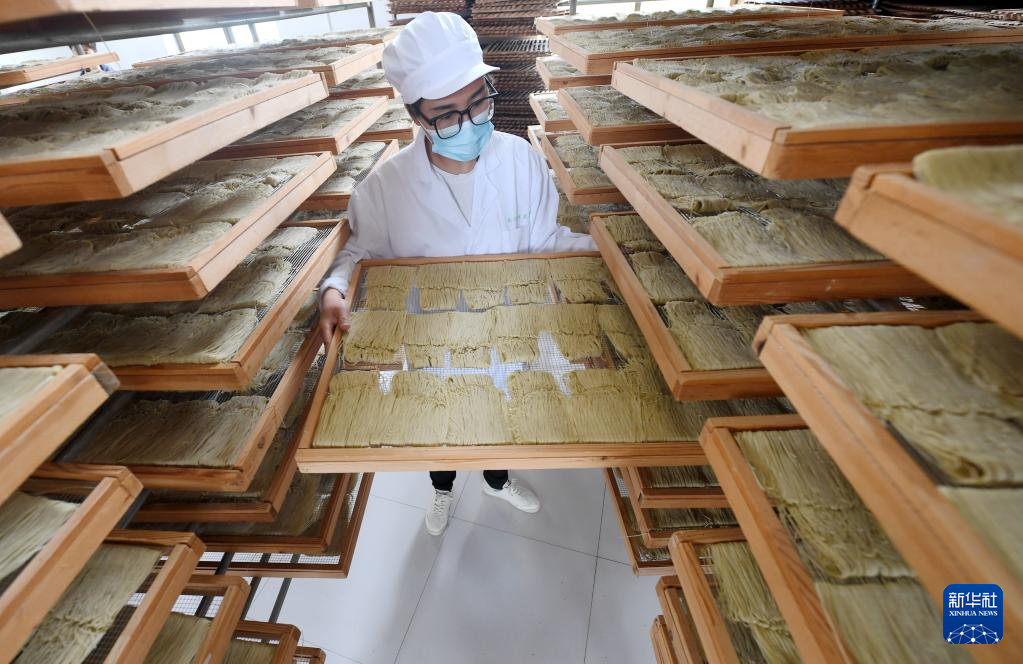 8月30日在饶阳县一家金丝杂面公司拍摄的金丝杂面成品。新华社记者 王民 摄