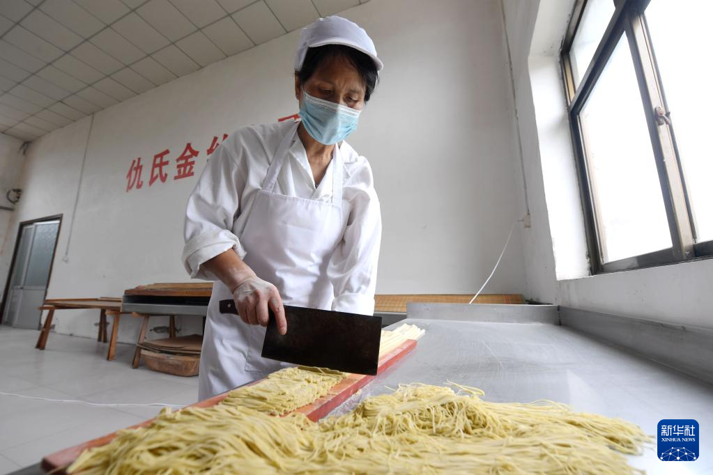 8月30日,饶阳县一家金丝杂面公司的工人在车间内切面。新华社记者 王民 摄