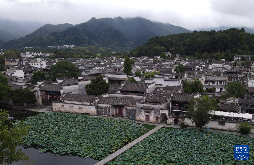 清晨的安徽黄山市黟县宏村(9月1日摄,无人机照片)。新华社记者 周牧 摄
