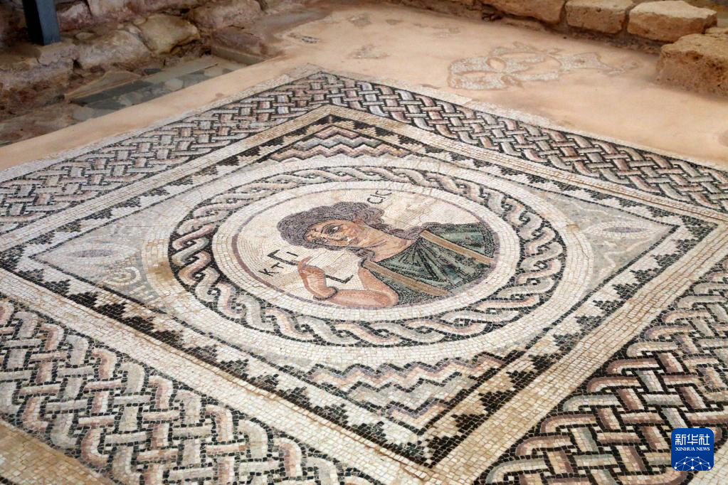 这是9月6日在塞浦路斯利马索尔附近的库伦考古遗址拍摄的公共浴室地面的马赛克砖。新华社记者 郭明芳 摄