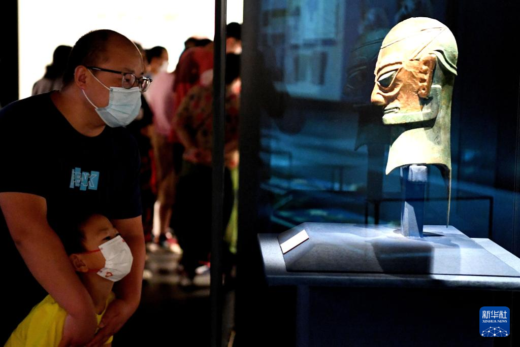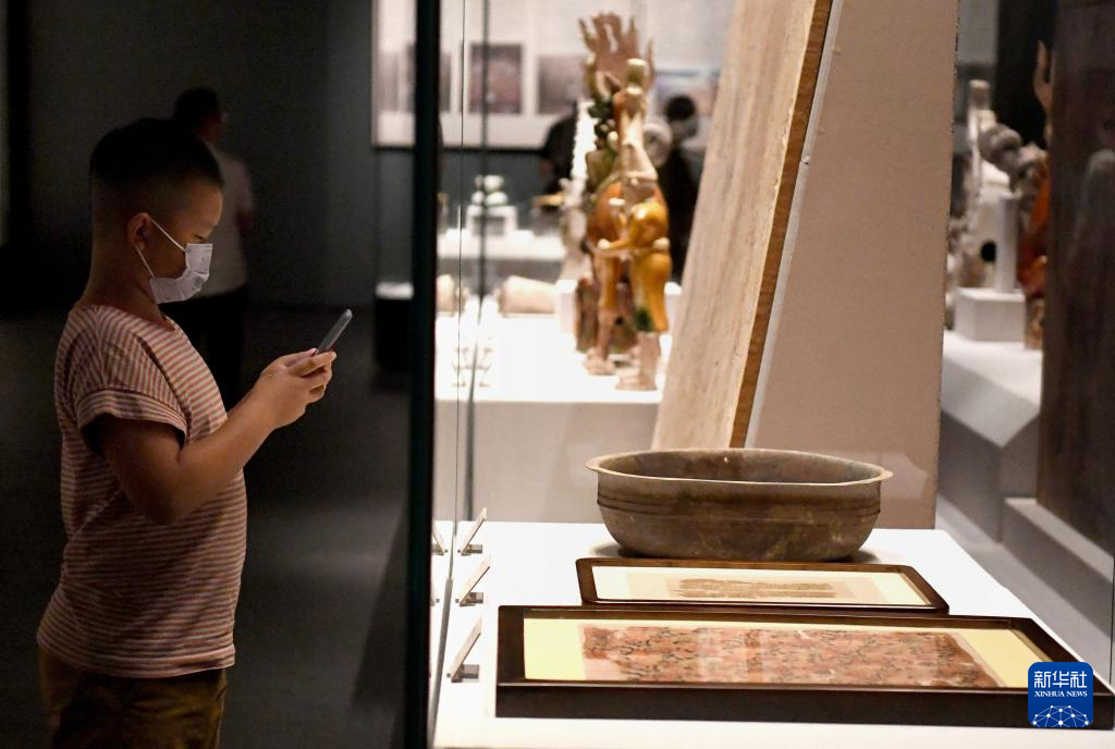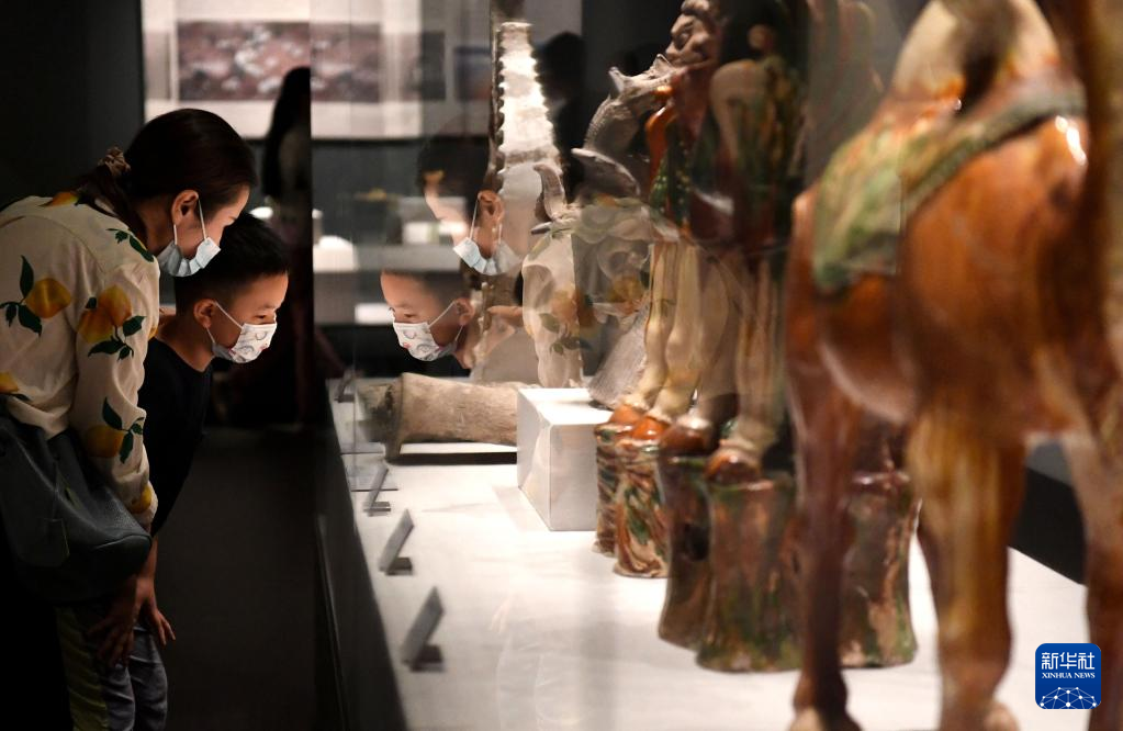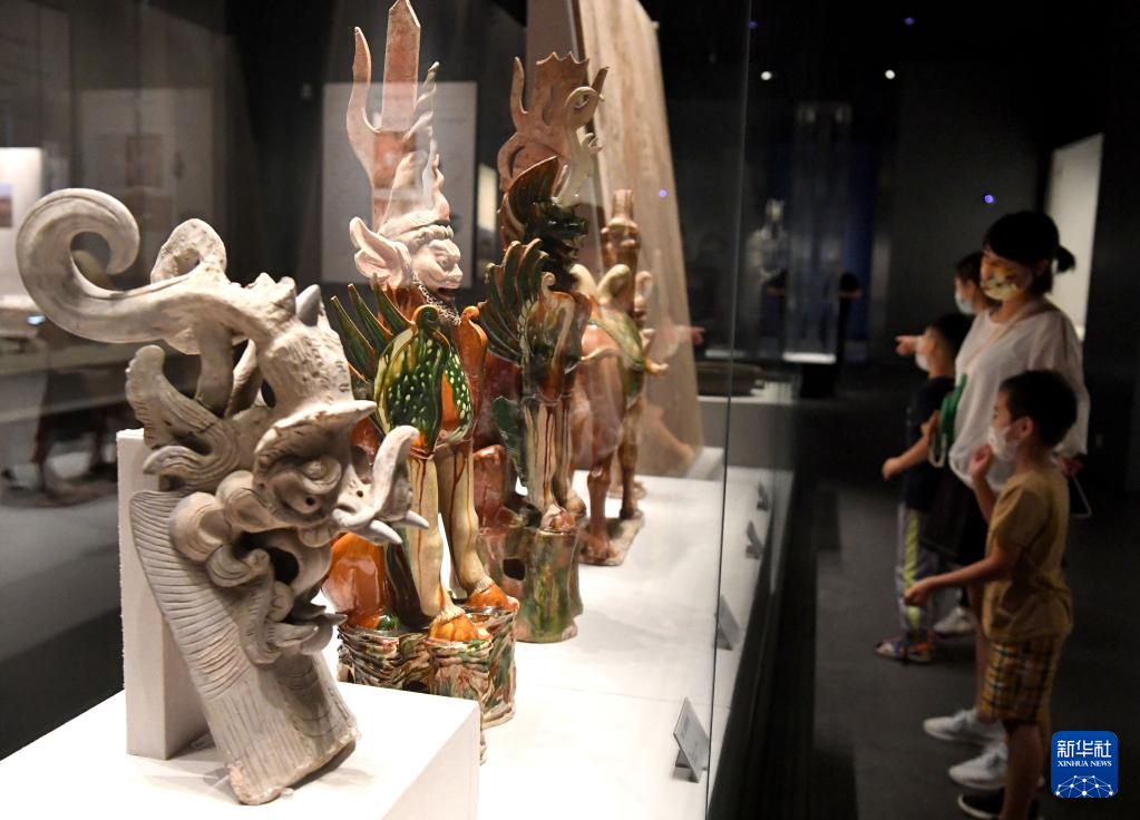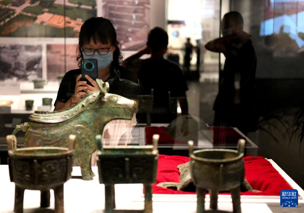 9月10日,在郑州博物馆文翰街馆,市民参观“繁星盈天——中国百年百大考古发现展”。新华社记者李安摄