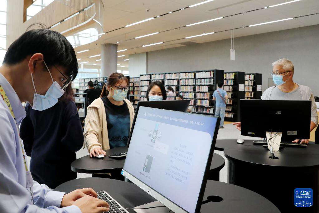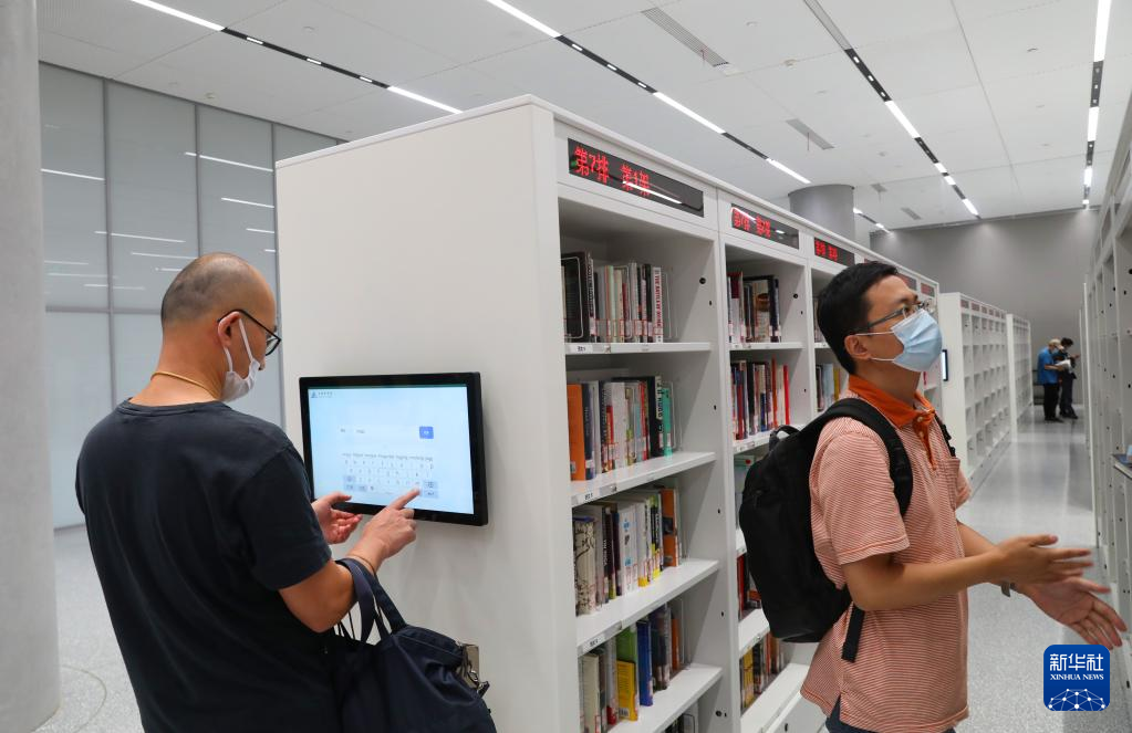 9月28日,读者在智能书架区通过安放在书架上的电脑查询书籍。新华社记者 方喆 摄