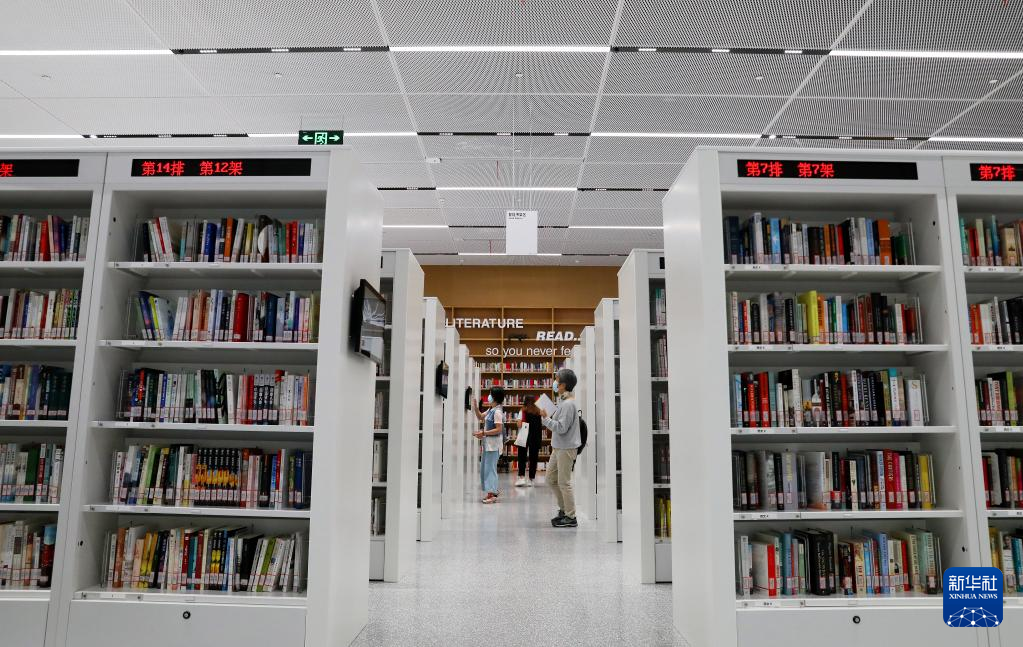 9月28日,读者走在上海图书馆东馆智能书架区内。新华社记者 方喆 摄