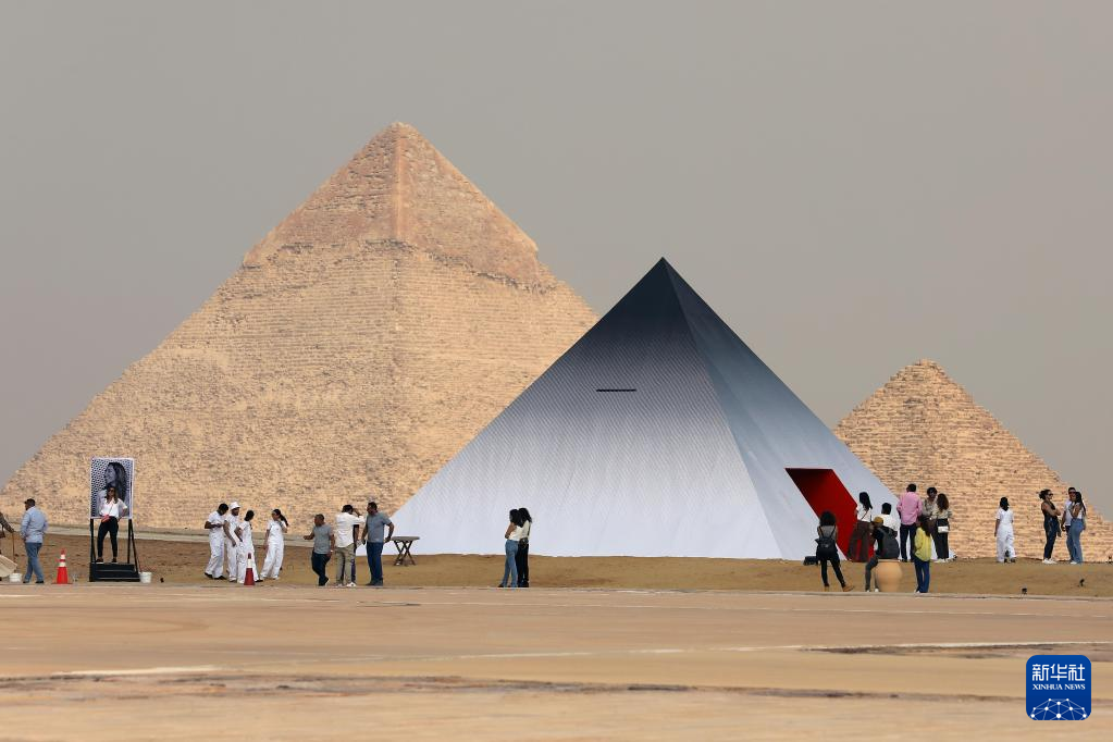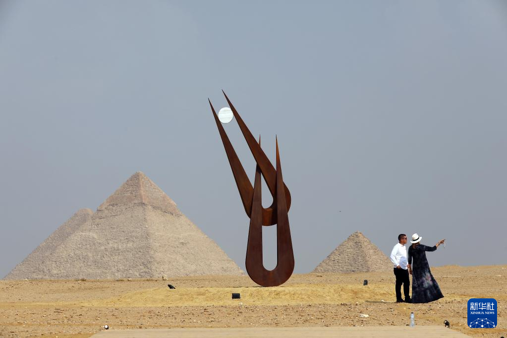 这是10月27日在埃及吉萨金字塔景区拍摄的参展艺术作品。新华社发(艾哈迈德·戈马摄)