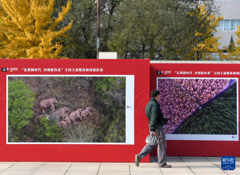 这是11月10日在中华世纪坛拍摄的“礼赞新时代 再创新伟业”全国主流媒体新闻摄影展现场。